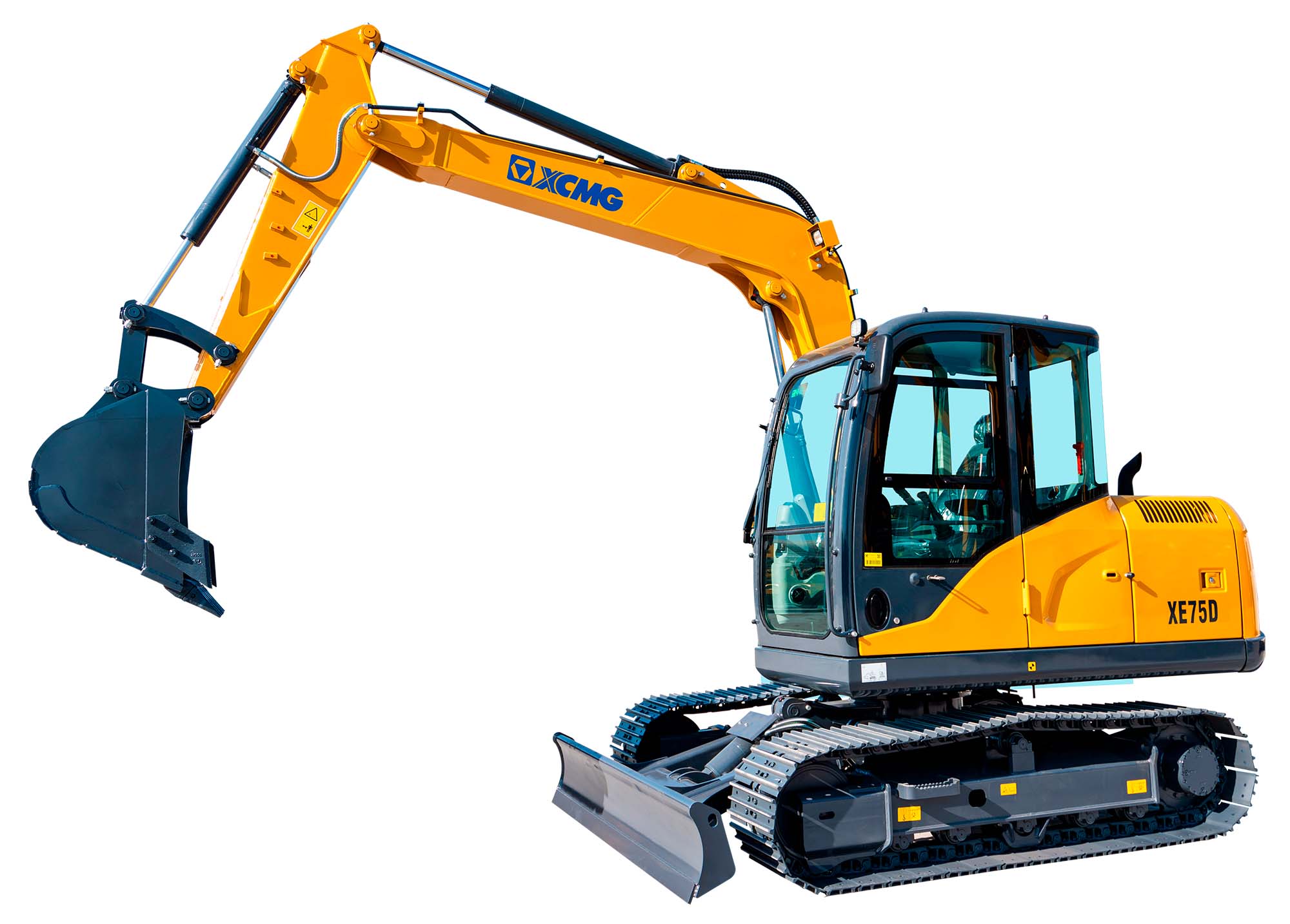Помимо вращения башни, мини-экскаватор XE75D имеет возможность поворота стрелы относительно верхней платформы. Операторское кресло обладает широким диапазоном регулировок для индивидуальной настройки. В топливной системе применяется электронное управление. В базовую комплектацию также входят подготовка гидролинии для подключения гидробура и гидромолота, кондиционер и стальные гусеницы.